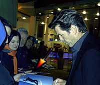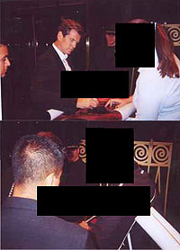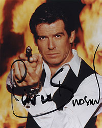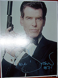 | #5128 Pierce Brosnan US $ 149.00 Our world's star chaser #1 did int once more. He got for us extremely nice Pierce Brosnans with interesting history! 8x10 color shot as 007 James Bond in DIE ANOTHER DAY, signed by Pierce Brosnan in-person on February 6, 2003 as he was leaving the Staples Center in Los Angeles, CA, USA, after a Rolling Stones Concert! Market is flooded with Brosnan fakes. Beware and get the real deal from THE 007 experts at b'bc. |