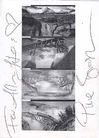 | #5334 Pierce Brosnan US $ 449.00 What a piece!!! Original Goldeneye storyboard crew copy wonderfully signed by Pierce Brosnan in-person for the PRESIDENT OF THE FRENCH JAMES BOND FAN CLUB SEVERAL YEARS AGO. Pierce signed with his meanwhile nearly impossible to find full signature and added also his Life and heart to the signature. A fantastic Pierce Brosnan related item!!! |