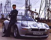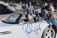 | #5395 Pierce Brosnan US $ 129.00 Fantastic 8x10 color BEHIND THE SCENES shot as 007 James Bond in THE WORLD IS NOT ENOUGH WITH HIS BMW Z8 IN THE CASPIAN SCENES. Signed in-person by Pierce Brosnan on February 15th, 2001 at a party hosted by G.Q. magazine held at "The Factory", La Pierre Street, West Hollywood, CA USA. Buy with confidence! Right out of my private collection. A very very rare shot. |