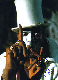 #5038 Geoffrey Holder US $ 99.00 Fantastic shot! 8x10 color shot as Baron Samedi in LIVE AND LET DIE, wonderfully signed in-person by him and he added also love and Baron Samedi to his signature what is more than rare!!! The best shot we ever had from him in stock! |