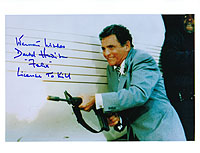 #4288 David Hedison US $ 69.00 8x10 color shot as FELIX LEITER in LICENSE TO KILL. Wonderfully action shot and signed " David Hedison, FELIX LEITER". Directly obtained from Mr. Hedison in-person at private signing. 1000% authentic!!! A scorcher!!! |