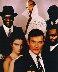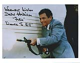 #2205 David Hedison US $ 69.00 8x10 color shot as "FELIX LEITER" in LICENSE TO KILL and LIVE AND LET DIE. Wonderfully signed and he also added "FELIX". A very rare shot to get from him! |