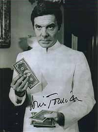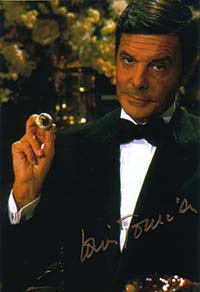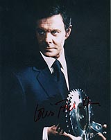 #2871 Louis Jourdan US $ 79.00 8x10 color shot as KHAMAL KHAN in OCTOPUSSY. Clearly signed by Louis Jourdan in red! This color shot is extremely rare. Wonderful addtion for every Bond Collection. |