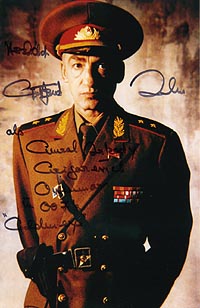 #5482 Gottfried John US $ 79.00 Fantastic 8x10 bw shot as GENERAL OURUMOV in GOLDENEYE. Wonderfully signed by him also with his character name! RARE SHOT WE NEVER HAD BEFORE IN STOCK! Obtained directly from him in Germany in October 2003. |