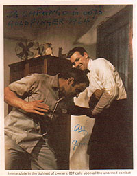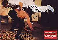 #4669 Alf Joint US $ 129.00 8x10 color shot from Capungo the assessin in the pre title sequence in Goldfinger. The second one I have ever seen!!! He added "as Capungo in 007's Goldfinger 1964" to his signature. EXTREMELY RARE! Obtained by myself directly from his home in GB in May 2002.VERY RARE SIGNATURE AND SHOT! |
