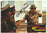 #2240 Clifton James US $ 79.00 8x10 original movie still from THE MAN WITH THE GOLDEN GUN. The great scene "Seargent Pepper meets Elephant Baby", signed boldly by Clifton James. He added ako 007!!! RARE! |