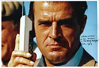 #4909 Alkris Kritikos US $ 149.00 Extremely rare white card signed by "Santos" in FOR YOUR EYES ONLY. The only autograph from him we ever saw!!! Perfect for matting with a photo from the movie. |