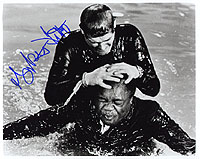#2661 Yaphet Kotto US $ 99.00 8x10 color shot from THE FIRST ROGER MOORE BOND: LIVE AND LET DIE. Great action shot: 007 fights against KANANGA (Yaphet Kotto) under water!!! A scorcher! Obtained from the fantastic collection of a famous autograph book author! Yaphet Kotto is extremely rare to get on a Bond shot! Take the chance! |