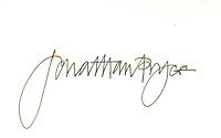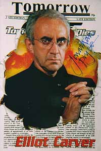 #3977 Jonathan Pryce US $ 79.00 8x10 color shot as ELLIOT CARVER IN TOMORROW NEVER DIES, wonderfully signed by him and he added also "aka Elliot Carver". This is very rare!!! |