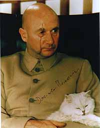#2784 Donald Pleasance US $ 229.00 VINTAGE 8x10 color shot as ERNST STAVRO BLOFELD with his famous cat and Sean Connery in YOU ONLY LIVE TWICE. Wonderful and meanwhile hard to get picture. This is an latest signed Donald Pleasance. Obtained from a private collection in USA. HE IS VERY HARD TO GET!!! |
