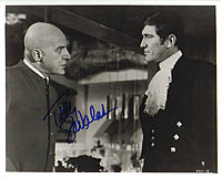 #3134 Telly Savalas (dec.) US $ 299.00 8x10 color shot as "Blofeld" in ON HER MAJESTY'S SECRET SERVICE. Wonderful shot and awsome signed by Telly Savalas. VERY RARE!!! Obtained from a USA private collection. |