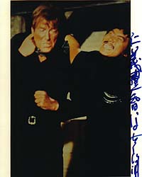 NOT FOR SALE Wonderful 8x10 COLOR shot as CHANG, Drax's bodyguard and assassin in Moonraker. He is extremely difficult to find! HE ALSO WROTE: IS IT A GOOD MASSAGE? INCREDIBLE! Comes with the copy of the letter he sent with the autographs. Written by him in Japanese!!! |