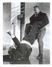 #5509 Harold Sakata US $ 2299.00 What a find! Fantastic 5x7 bw vintage official postcard shot from long time deceased Harold Sakata in his role as MR. ODDJOB in GOLDFINGER. One of the rarest James Bond related autographs and highly valueable. Inscribed to Roger Harris. Get the real deal! |
