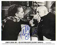 #4566 Telly Savalas (dec.) US $ 299.00 Awsome original vintage 1969 press still 8x10 color as "Ernst Stavro Blofeld" in ON HER MAJESTY'S SECRET SERVICE. Wonderful rare item and awsome signed by Telly Savalas. VERY RARE!!! Telly signed this one in-person in 1991 for a friend of mine in Geneva/Switzerland. Perfect provenance. From my personal collection. |