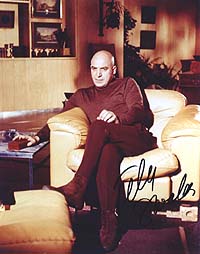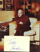 #5329 Telly Savalas (dec.) US $ 299.00 Awsome 8x10 bw shot as "Ernst Stavro Blofeld" in ON HER MAJESTY'S SECRET SERVICE. Wonderful shot and awsome signed by Telly Savalas. VERY RARE!!! Telly signed this one in-person in 1991 for a friend of mine in Geneva/Switzerland. Perfect provenance. From my personal collection. |