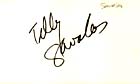 3x5 signed white index card by Telly Savalas (BLOFELD in OHMSS). Savalas is more than rare in authentic form. He had secretariels who signed his autograph requests through the mail. So the market is floated with secretariel fakes. This is an in-person obtained one from a +35 year autograph collector in Hollywood. 1000% authentic and perfect for matting with a BLOFELD photo. |