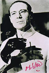 #2853 Joseph Wiseman US $ 249.00 8x10 bw shot as DR.NO in the first 007 flick. HE ALSO SIGNED "as Dr. No" TO HIS SIGNATURE. This is EXTREMELY RARE!!! Signed by him for the MS-Society of GB for charity. A front piece for your collection. |