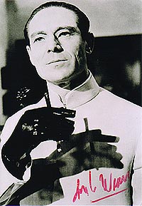 #3933 Joseph Wiseman US $ 249.00 Fantastic 8x10 bw photograph as DR.NO in the first 007 adventure. Awsome signed with a black ballpoint by DR.NO. Obtained directly from him in May. 2001. He is meanwhile 94 years old!!!! |