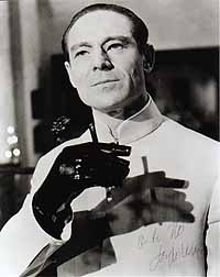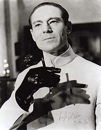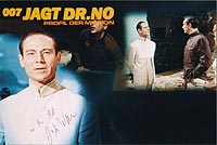 #4010 Joseph Wiseman US $ 249.00 THE BEST 8x10 color photograph as DR.NO in the first 007 adventure WE EVER SAW!!! Awsome signed with a black ballpoint by DR.NO. HE ADDED ALSO "AS DR.NO. Obtained directly from him in May. 2001. He is meanwhile 94 years old!!!! |