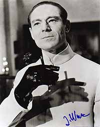 #3120 Joseph Wiseman US $ 249.00 Extremely rare 8x10 color shot as DR.NO in Dr. No. Awsome shot, signed by Joseph Wiseman also with his character name. Obtained from a german collector trough his "secret" mail address which works! HE IS VERY RARE and 94 years old!!!! |