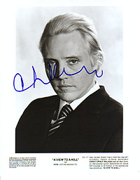 # 3343 Christopher Walken US $ 99.00 8x10 color shot MAX ZORIN in A VIEW TO A KILL; wonderfully signed by him in New York City. Signature was obtained in-person by a very reputable star-chaser. A rare motive. |