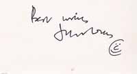 #5250 John Wells (dec.) US $ 179.00 White card signed by John Wells (dec.) aka Q's assistant in Casino Royale. Extremely rare autograph |
