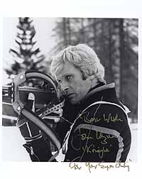 #5418 Jon Wyman US $ 99.00 Extremely rare 8x10 bw shot as ERICH KRIEGLER in FOR YOUR EYES ONLY. Wonderfully signed by him also with his character name and film name addition. A more than rare James Bond signature. Obtained from a private signing he did in August 2003. |