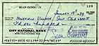 | #2029 Sean Connery US $ 399.00 Original private cancelled and SIGNED check from Mr. Sean Connery. This is a really great and super rare item from Connery. In the "Signatures of the Stars" book the author Mr. Kevin Martin reports in the book that a very few Connery checks were found (appox. 25!!!!!!!!!!!!!!!!). We at B'BC have now 5 of these in our stock!!!. Signature is perfect . So you have the chance to own one of these rare items. And you can be 100% sure to have an original Connery autograph!!!!!!! Filled out for a "Dr." at the amount of 51 US$ at Jan 23 1980. |