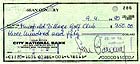 | #4159 Jack Lord (dec.) US $ 149.00 Super rare private check from Jack Lord, the first FELIX LEITER in DR.NO . Perfect for matting with a photo of Dr.NO/Felix Leiter. No stamps did affect the signature. A true and rare piece!!!! We have limited quantities of these checks in stock. |
