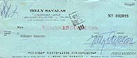 | #4158 David Niven (dec.) US $ 389.00 Super rare private check from David Niven who played the role of JAMES BOND 007 in Casino Royale (1967). He is extemely rare on any autographed material and especially on such a nice private check. Perfect for matting with a photo from Casino Royale as 007 himself. Also you have 1000% authenticity with a signed check of a star!!! Very limited quantities. |