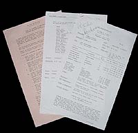 | #4053 VARIOUS PRODUCTINO CREW PAPERS/CALLSHEETS Each one only: US $ 49.00 - $ 99.00 We were able to get hold of various production used Film Crew Paperwork from Goldeneye and THE WORLD IS NOT ENOUGH. Callsheets, Model Unit Shedules, First and Second Unit Shedules. Please ask. |