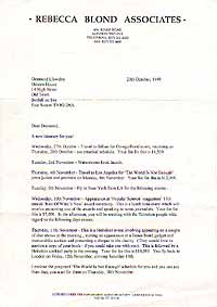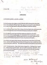 #4344 Desmond Llewelyn (dec.) US $ 1299.00 -from his private property- INCREDIBLE ! Personal letter from Mr. Llewelyns manager about his time-table from Oct. 1999 till December 1999 with all his sheduled events and flights around the world and especially with all fees he gets for each event......incredible to read. A VERY VERY PRIVATE AND CONFIDENTAL LETTER of Bond history. A real one of a kind!!! Stuff like this normally NEVER reachs the collectors market.