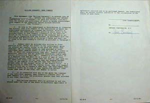 Sean Connery 007 contract US $ 5400.- Extremely rare two pages legal agreement which spells out various points pertaining to the Bond movie "Never say never again. The document is boldly signed on the final page by Sean Connery. One of the toughest things to get. James Bond documents are extremely rare and to get an 007 contract is nearly impossibile. A one time chance in your life!!! |