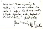 2 side business note from Honor Blackman "Pussy Galore in Goldfinger" on a white 4x6 card. Perfect for matting. |