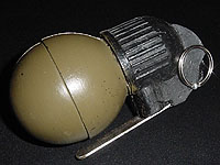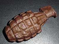 | #prop 333 DIE ANOTHER DAY US $ PLEASE MAKE OFFERS (Estimate Value 600 US $ ) A SUPERB PIECE FROM THE NEW JAMES BOND ADVENTURE! A stunt rubber grenade used by Moon's troops in DIE ANOTHER DAY. Wonderfully detailed piece and very rare! |