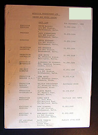 | #prop219 NEVER SAY NEVER AGAIN ---Rarity--- US $ PLEASE MAKE OFFERS (Estimate Value 1500 US $ ) Fantastic rare! Original Woodcote Productions Ltd. "Never Say Never Again" Unit list with all addresses from all employers involved in the movie. Original 1982 21 pages list directly from a crew member (The computer video electronics supervisor of the film). THIS IS AN ORIGINAL NEVER SAY NEVER AGAIN DOCUMENT; NO REPRINT OR COPY!!! Documents from NEVER SAY NEVER AGAIN ARE NORMALLY IMPOSSIBLE TO FIND!!! |