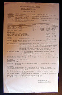 | #prop223 NEVER SAY NEVER AGAIN ---Rarity--- US $ PLEASE MAKE OFFERS (Estimate Value 1000 US $ ) Fantastic rare! Original Woodcote Productions Ltd. "Never Say Never Again" CALL SHEET NUMBER 62. Four pages directly from a crew member (The computer video electronics supervisor of the film). THIS IS AN ORIGINAL 1982 NEVER SAY NEVER AGAIN DOCUMENT; NO REPRINT OR COPY!!! Documents from NEVER SAY NEVER AGAIN ARE NORMALLY IMPOSSIBLE TO FIND!!! |