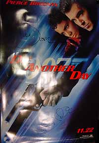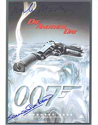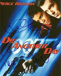 | #5140 DIE ANOTHER DAY US $ 599.00 New Arrival from our London star-chaser! 8x10 color 007 mini poster, signed by BY BOTH JAMES BOND PRODUCERS IN PERSON: MICHAEL G. WILSON AND BARBARA BROCCOLI. Both signed this piece at the Savoy Hotel on Feb. 2, 2003 in London. Alson signed by Judi Dench at the Haymarket Theatre in-person. The RAREST signature on this piece is from Tymarah = The Korean Scorpion Guard who signed at the Dorchester on Feb. 5, 2003. We never saw his signature before on a Bond Photo!!! |