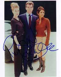 | #5019 DIE ANOTHER DAY US $ 299.00 Brandnew 8x10 color press shot as 007 James Bond and Jinx in DIE ANOTHER DAY with the new Aston Martin. Pierce signed in-person for my star-chaser in October 2002 in New York City at the Mark Hotel and the New School. He was in NYC to promote Die Another Day and the new Omega watch. Halle Berry signed in-person at the Today Show in November 2002 in NYC. To get both on one photo is extremely rare. |