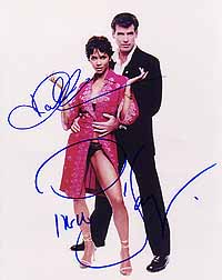| #5022 DIE ANOTHER DAY US $ 299.00 Brandnew 8x10 color shot as 007 James Bond and Jinx in DIE ANOTHER DAY. Pierce signed in-person for my star-chaser in October 2002 in New York City at the Mark Hotel and the New School. He was in NYC to promote Die Another Day and the new Omega watch. Halle Berry signed in-person at the Today Show in November 2002 in NYC. To get both on one photo is extremely rare. |