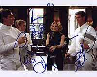 | #5036 DIE ANOTHER DAY US $ 799.00 Now we got all items from our London Star chaser for DIE ANOTHER DAY. Collected by him within the last months. Incredible piece: Fantastic 8x10 color shot from the DAD poster, signed in-person by 5 (!!!): Judi Dench aka "M" (in-person Haymarket 10.10.02), C.McQueen (Hilton charity evening 12.10.02), Rachel Grant aka "pieceful" (Hilton breast cancer charity 12.10.02), Ian Pierie aka "Creep" (Macbeth play 16.11.02) and also signed by Samantha Bond aka Moneypenny (in-person Albery theatre). A real incredible piece with ALL SIGNATURES OBTAINED IN-PERSON. Highly Valueable!!! |