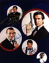 | #2831 4 James Bond's US $ 1499.00 8x10 color shot. Pictured are all 5 James Bond actors. Sean Connery, Pierce Brosnan, Timothy Dalton, Roger Moore and George Lazenby. Signed by 4 in-person!!!! Timothy Dalton, Pierce Brosnan (added "`97"), Roger Moore, and George Lazenby (added "007"). My star-hunter got these signatures over the last years all in-person himself in Los Angeles/C.A., only with Sean Connery he had no luck. AWSOME PIECE OF BOND HISTORY. WHENEVER YOU HAVE THE CHANCE TO GET ALSO CONNERY TO SIGN THIS PIECE THEN YOU HAVE ABSOLUTELY THE UNIQUE AND MOST RARE 007 AUTOGRAPH!!! |