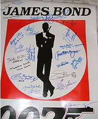 | #5538 JAMES BOND SPECIAL US $ 2499.00 A REAL ONE OF A KIND PIECE! SIGNED IN-PERSON BY ALL 26 BOND CELEBRITIES IN LONDON UK!!! SIGNED BY: ROGER MOORE,SEAN BEAN,GOLDIE,GRACE JONES,JOHN CLEESE,JUDI DENCH,HONOR BLACKMAN,CAROLINE MUNRO,STEPHEN BERKOFF,MADELAINE SMITH,BURT KWOUK,EUNICE GAYSON,SHIRLEY EATON,MAUD ADAMS,JONATHAN PRYCE,DAVID YIP,BLANCHE RAVALEC "DOLLY"FROM MOONRAKER,MARIAM D'ABO,VIRGINIA HEY,URSULA ANDRESS,JULIAN GLOVER,CHARLES DANCE,SAMANTHA BOND,WILL YUNE LEE AND EVEN SIGNED BY DANA BROCCOLI, THE WIFE OF LATE CUBBY BROCCOLI. A ONCE IN A LIFETIME CHANCE! |