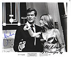 | #4202 THE MAN WITH THE GOLDEN GUN US $ 229.00 Extremely rare 8x10 bw double shot. Upper photo part from Goldfinger, signed by Guy Hamilton. The other part of the photo is from THE MAN WITH THE GOLDEN GUN, wonderfully signed by Roger Moore aka 007. Super double signed piece and an extremely rare combination. |