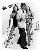 | #1584 The man with the golden gun US $ 329.00 8x10 color promotional photo from "The man with the golden gun". Signed by three: Roger Moore, Maud Adams and Britt Ekland. This is one of the nicest shots I have ever seen. Wonderful in-person signatures. A highly collectible investment piece! |