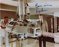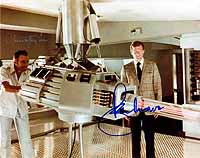 | #3405 MAN WITH THE GOLDEN GUN US $ 229.00 8x10 color shot from the duelling sequence in THE MAN WITH THE GOLDEN GUN, signed by Christopher Lee and Roger Moore on a wonderful color glossy photograph. Tough to get both together. From a GB private collection. |