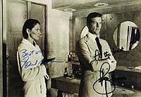 | #1727 Man with the golden gun US $ 229.00 Super 8x10 bw movie still from THE MAN WITH THE GOLDEN GUN. Signed by Roger Moore and Britt Ekland. From my private Collection. Both signatures obtained through the mail. Absolutely authentic and rare cast signed item. |