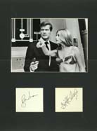 | #1162 Man with the golden gun US $ 199.- Original 8x10 press still of Ekland and Moore from "Golden Gun". Acid free matted with two in-person signatures of Moore and Ekland to an overall size of 14x18. Ready to frame.2 |