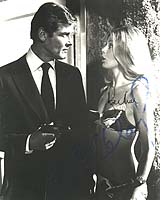 | #3492 MAN WITH THE GOLDEN GUN US $ 229.00 Wonderful 8x10 bw shot from the MAN WITH THE GOLDEN GUN, signed by Roger Moore aka 007 himself (who added All The Best) and Maud Adams aka Anrea Anders (who added Best Wishes). Rare in authentic form. |