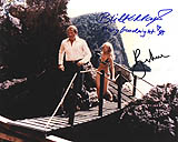 | #2507 Golden Gun US $ 229.00 8x10 color action shot from THE MAN WITH THE GOLDEN GUN. Pictured is a scene at Scaramanga's Island, 007 and Mary Goodnight running away....EXTREMELY RARE SHOT TO GET SIGNED. Signed by Britt Ekland (in-person 1998 at a collector shot), she added MARY GOODNIGHT to her signature and also signed by Roger Moore (Feb.2000, London, GB). A showpiece!!! |